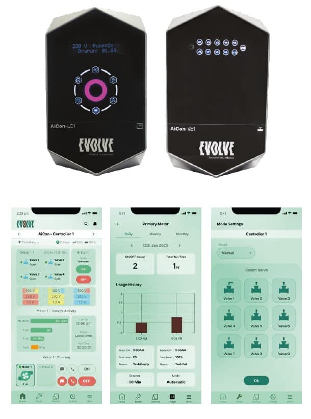 With advanced features such as integrated motor protection, a modular full-touch screen design, and real-time alarms and notifications, the Evolve Aicon ensures reliability and efficiency. Seamless integration with local weather data, flow and pressure sensors, and mobile/web apps provides actionable insights, while detailed daily, weekly, and monthly reports with graphical analysis help farmers make informed decisions.